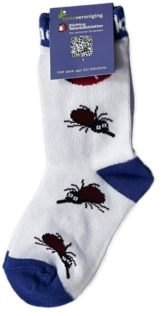 Het mooie van deze sokken is dat je er onze (vrijwilligers-)organisaties (Lymevereniging en Stichting Tekenbeetziekten) mee steunt, zodat wij ons belangrijke werk (voorlichting, patiëntondersteuning en onderzoek) kunnen blijven voortzetten.